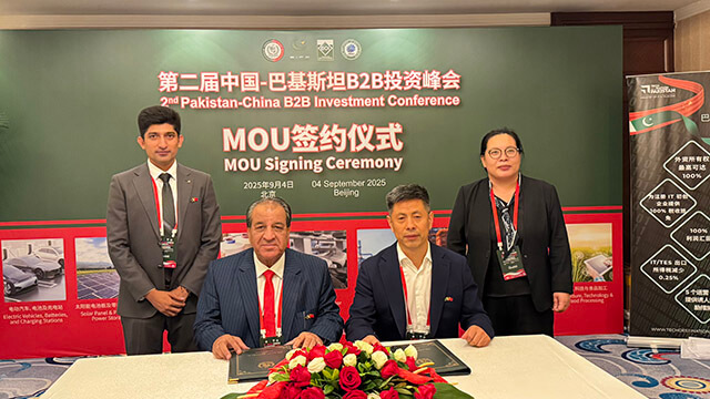 2025年9月4日,在刚刚落幕的上合组织峰会及纪念中国人民抗日战争暨世界反法西斯战争胜利80周年活动之后,第二届中国—巴基斯坦B2B投资峰会在北京中国大酒店隆重举行。本次峰会在巴基斯坦总理夏巴兹·谢里夫和中国贸促会会长任鸿斌、中国产业海外发展协会会长和振伟等两国高级官员的率领下,汇聚了中巴两国850余家领军企业1800余人共襄盛举,共同探索在电动汽车、太阳能技术、绿色农业等六大重点领域的合作机遇。沧州盛世伟业汽车附件有限公司总经理高良军受邀出席盛会全程,并在巴基斯坦总理夏巴兹·谢里夫的见证下与巴基斯坦汽车领军企业ST集团重磅签署合作协议。