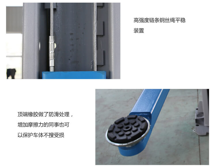 - 绳平衡系统,强制两滑车同步移动,有效防止车辆倾斜